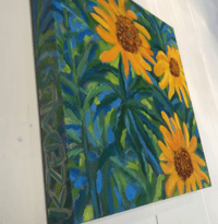 'Sunflowers and Hemp' is original artwork by Karina Zedalis in 2024, inspired by images she took while farming hemp and flowers in Boulder County, Colorado.